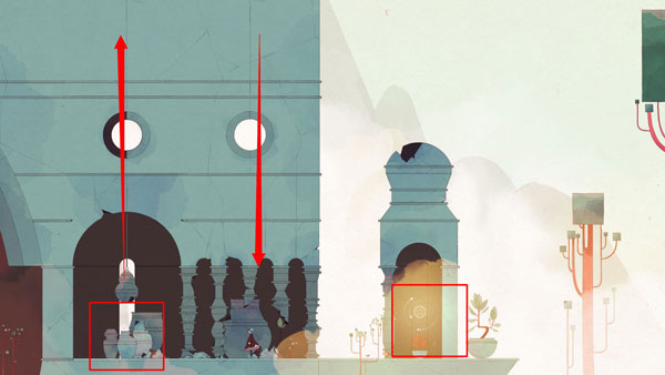 12、先向右破坏陶罐释放花瓣,上方可取得第三个“备忘录”。