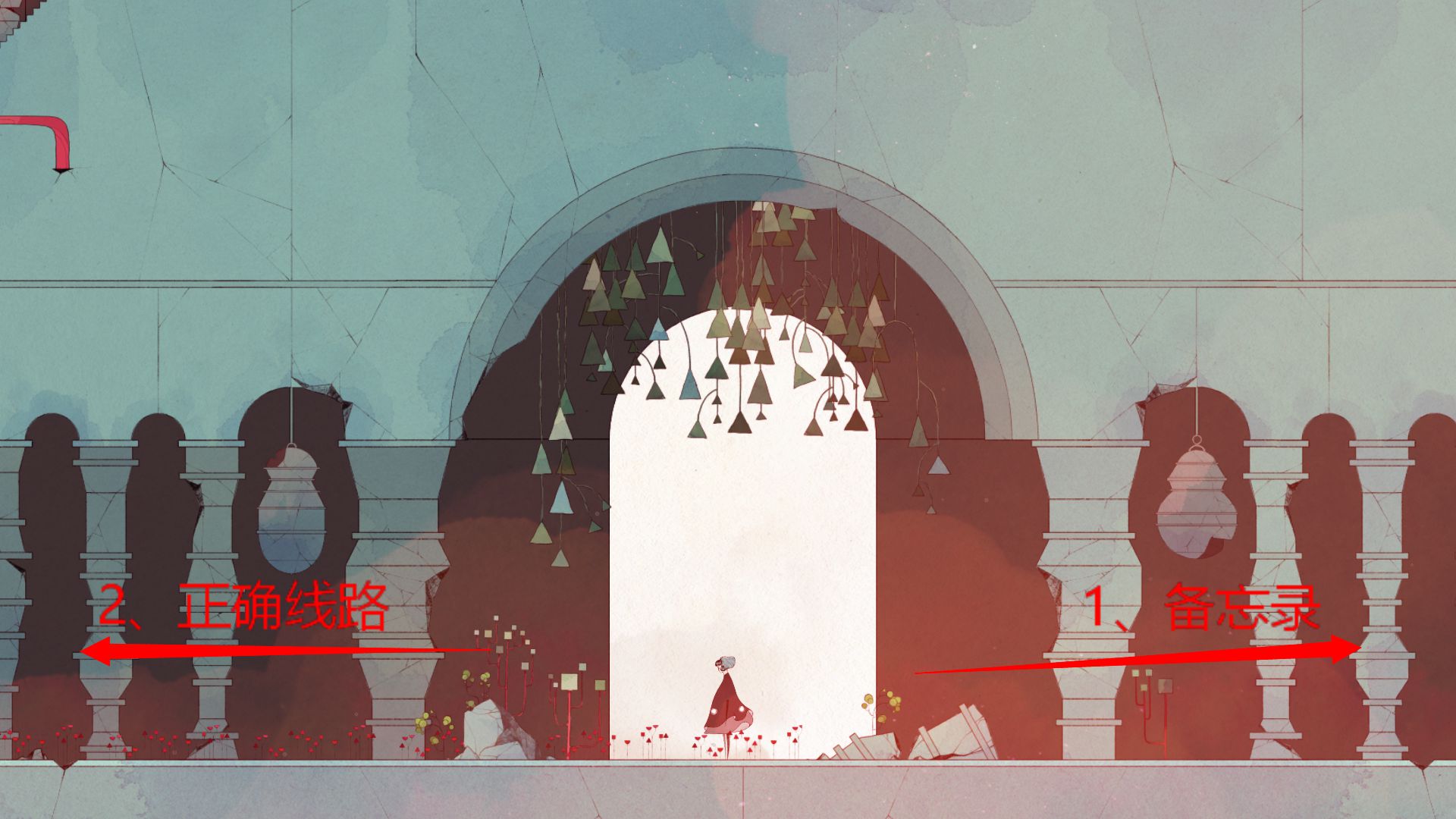 14、连续两次利用花瓣滑翔;右侧破碎陶罐内藏花瓣,其上方另有一个“备忘录”,需先抵达高处方可拾取。