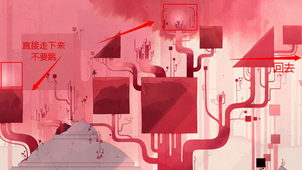 22、靠近大鸟时化为砖块触发钟鸣,击碎花瓶获取花瓣跃上巨钟;重复此操作完成最终跃迁。