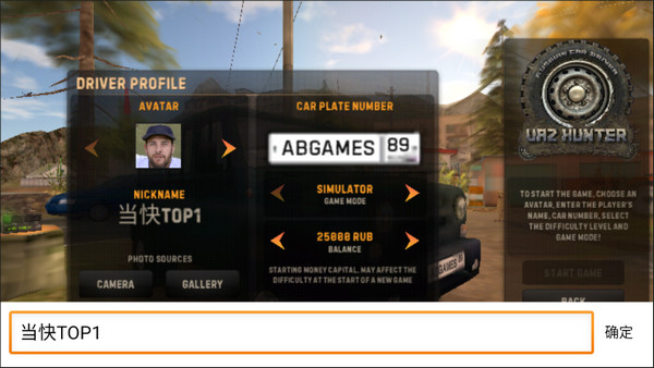 2、输入你的角色名称,正式踏上成为俄罗斯汽车猎人的旅程。