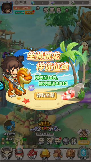 新玩家登录即可领取初始坐骑「荒漠跳龙」,闯关达到50关后更可直接解锁VIP10,开局即享核心代步工具与高阶成长特权,快速融入游戏节奏。